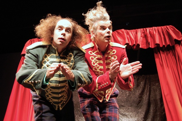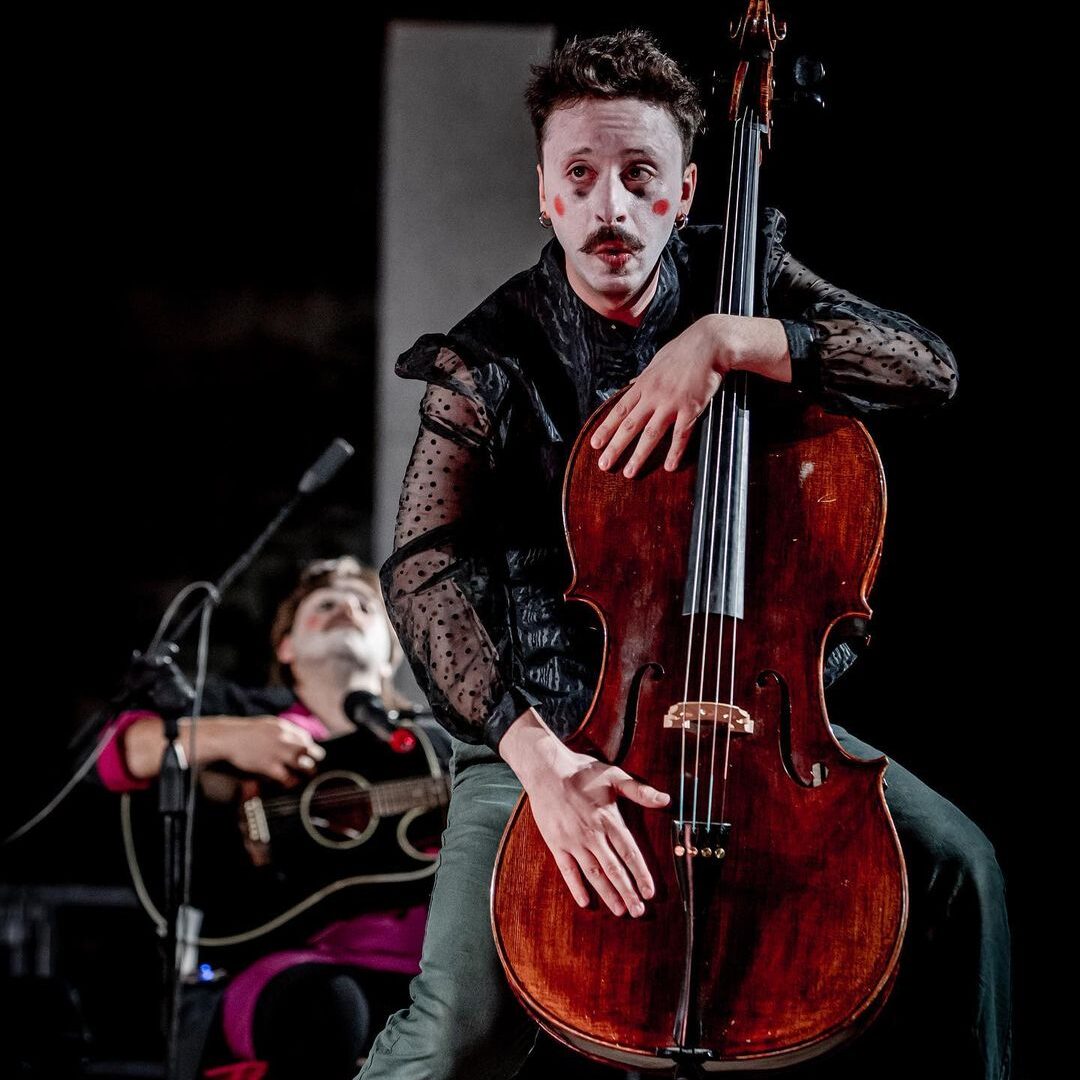 In scena due clown nelle vesti di bizzarri musicisti e due esuberanti giocolieri danno vita ad un mondo immaginifico di figure acrobatiche e virtuosismi sonori.