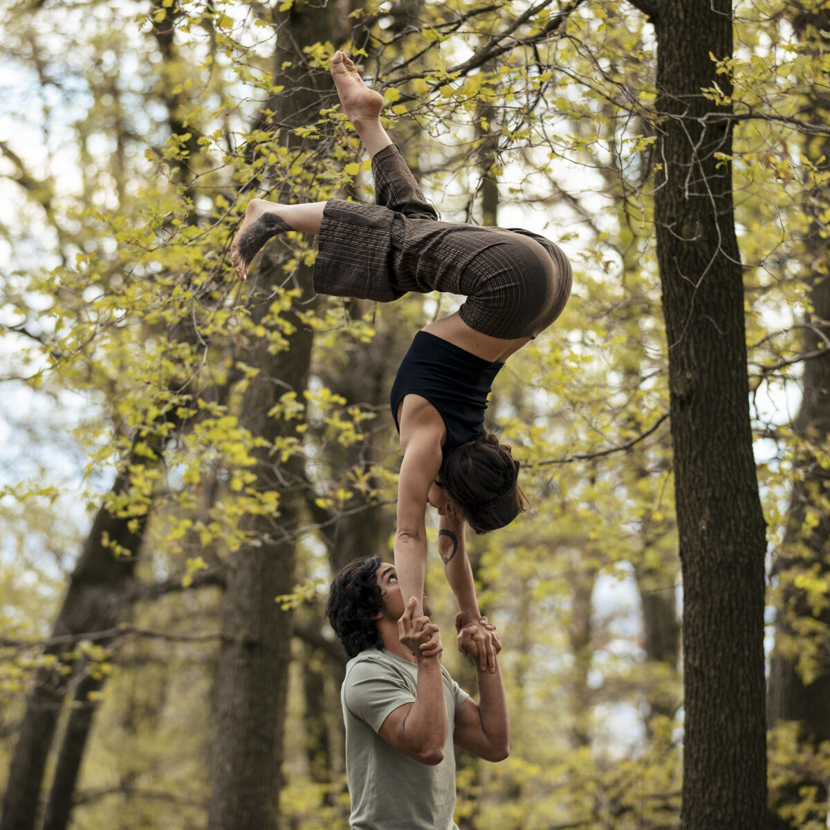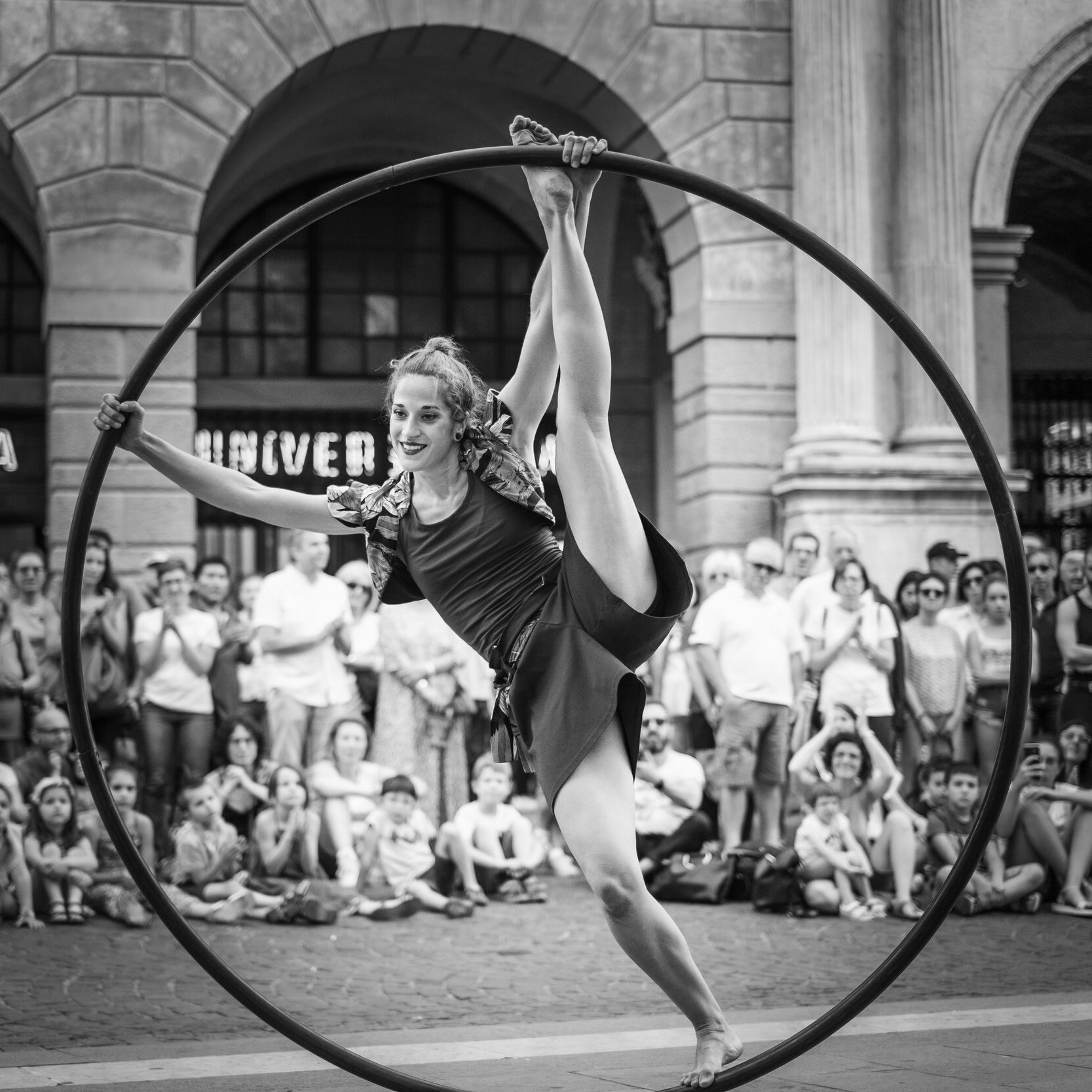 “Fragments” è un assolo che mescola i tessuti aerei con le catene. In un’atmosfera da vecchia fabbrica, questa performance, tanto poetica quanto potente, utilizza le catene come attrezzo circense, la dualità, tra la brutalità del metallo e la morbidezza del tessuto, ci porta a esplorare i limiti e le possibilità di queste due discipline.