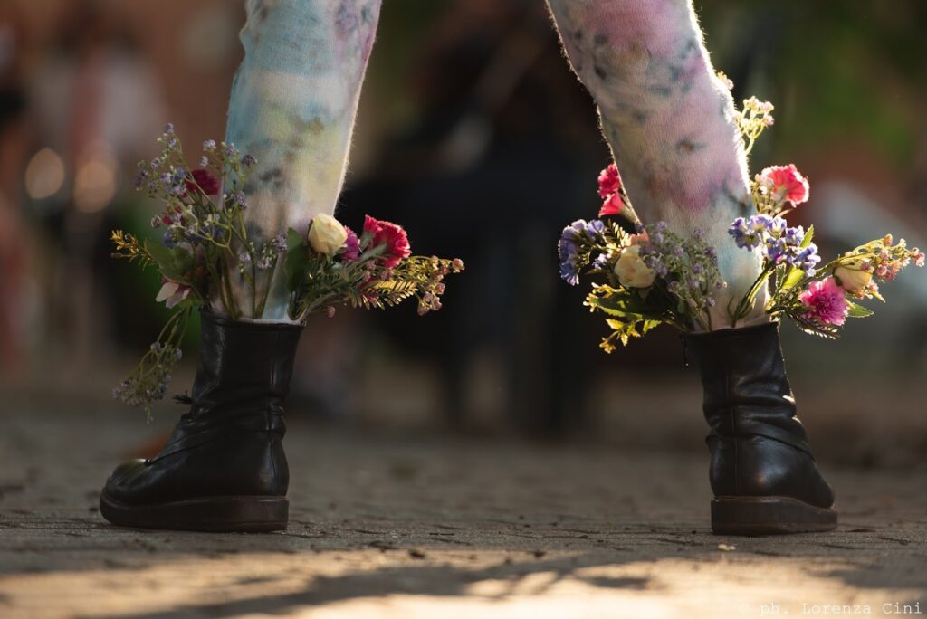 La performance è una passeggiata poetica tra alberi, versi, suoni e danze… per non scendere mai giù.